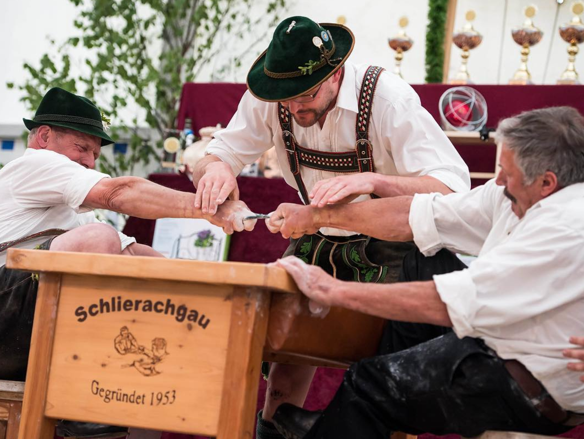 Finger-pulling is no laughing matter in the Alps. Finger wrestling was once used to settle disputes but is now a competition that is taken quite seriously by the contenders. The winner is the person who manages to pull the other contestant across the table, using only his or her finger! Contenders pick their digit carefully and subject it to rigorous training regimes involving crushing tennis balls and doing one finger pull-ups!