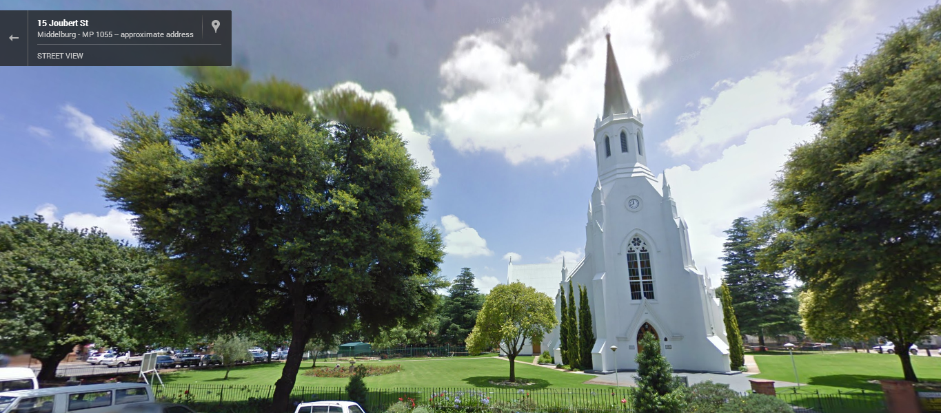 Okay, we really struggled to find a Streetview of our own Middelburg – the one in Mpumalanga – so we decided to go with the NG Gemeente Kerk there: