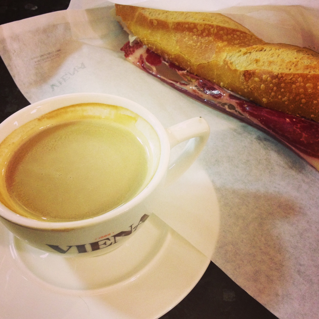 It seems crazy to me now, but before I went to Spain I didn’t drink coffee much. I’ve always been more of a tea person. Well, I soon found out that the Spanish don’t really do tea (the way South Africans do tea), so I quickly had to start drinking the national drink: café con leche. Luckily, it is absolutely delicious, so I really didn’t mind. Café con leche is typically served any time from breakfast throughout the day, in a short glass. It’s a double shot of espresso, topped up with hot milk, and occasionally a little foam. It should be eaten with a pastry of some kind: croissant, sponge cake, what we call pig’s ears, or a delicate baked marvel. What I love about café con leche is not only the coffee (which is superb) but the culture of it: Spanish people sit down and drink coffee, slowly, a few times a day. We could do with more of that. - Beautiful bocadillos