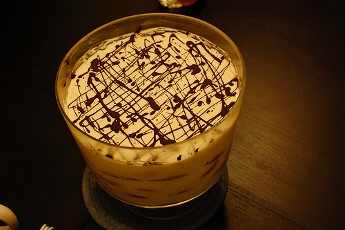 This is a very light and fluffy dessert – even though it might look heavy at first sight – originates in the Italian town of Siena. It consists of eggs, mascarpone (a triple cheese), brandy, some ladyfingers, thick cream, marsala spice, a tad of sugar, rum, and if you prefer shaved chocolate instead of cacao.