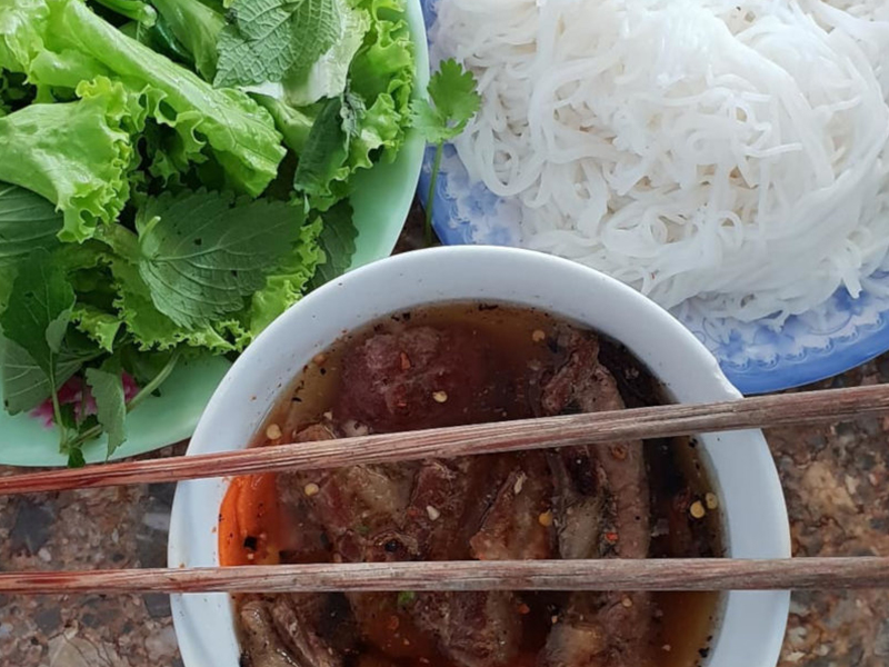 This celebrated Hanoi original is served with a selection of fatty pork slices (cha) and patties paired with dry rice vermicelli noodles and a selection of herbs. The dish is accompanied with a delicate mix of sweet and sour Vietnamese fish sauce with a variety of condiments including fresh garlic and chilli. Though generally only found in Hanoi, outside of Hanoi, across all regions of Vietnam, Bún thịt nướng, an equally delicious dish is served. Similarly to Bun cha. Bún thịt nướng is served with basil and mint for flavour, fresh salad, giá (bean sprouts), and chả giò (spring rolls). This might very quickly feature at the top of the list of the best food in Vietnam.