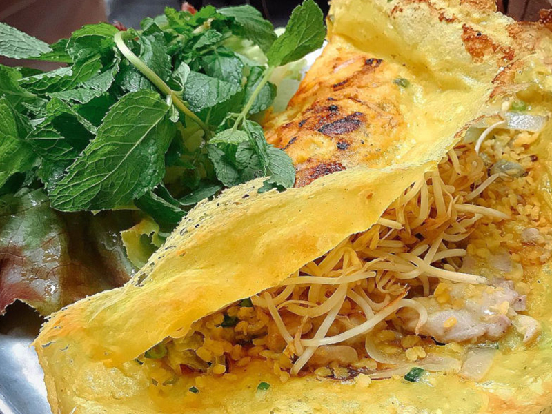 As they say, “When in Rome.” If you find yourself leaving Vietnam having not tried Banh xeo, you’re doing yourself a mischief. So, pull up a plastic chair at any local roadside store and do as the locals do. Believed to originate from France, this Vietnamese crepe-come-omelette is commonly served as a platter with an eclectic mix of pork or beef or chicken strips, shrimp, beansprouts, spring onion and mushrooms. This is usually accompanied with a fresh side of rice papers, lettuce and mustard leaves. So do as the locals do and fill your Ban xeo with the fillings of your choice, wrap it in a mustard leaf and tuck in! Don’t forget the peanut dipping sauce. The dipping sauce is always essential to get the complete experience.
