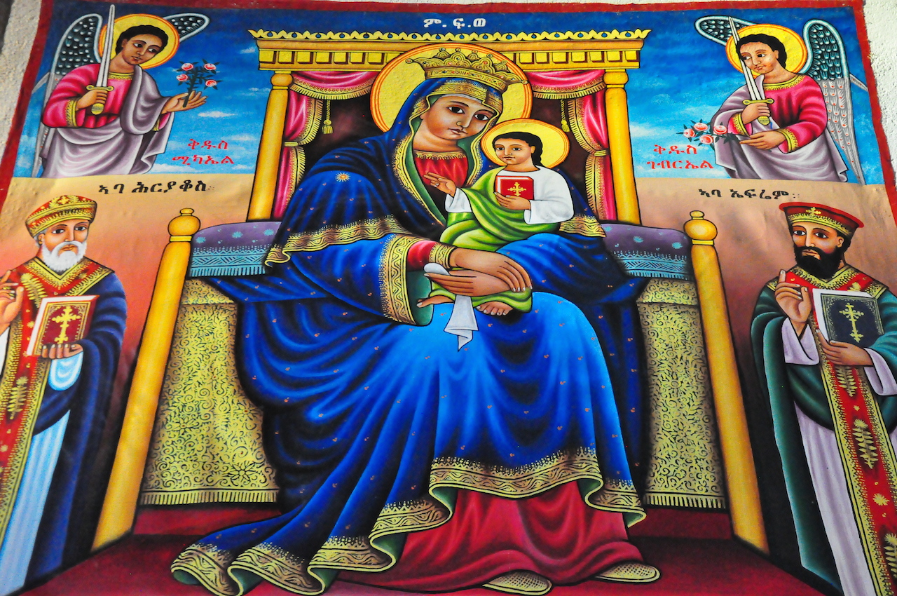 Just across the street is Ethiopia’s oldest church. The walls of the Cathedral of Mary of Zion are brightly painted with Bible scriptures. “That’s because many people were illiterate,” explains the priest who shows us around, “but they could understand the paintings.” Both sites are free to enter, though the Chapel of the Tablet, behind the cathedral, is guarded day and night as it is said to house the Ark of the Covenant – a gold-covered receptacle for the two stone tablets that are inscribed with the 10 commandments. According to the legend, which any Ethiopian can narrate to you, it was brought to Ethiopia by the son of Queen Sheba and King Solomon – Emperor Menelik the first.