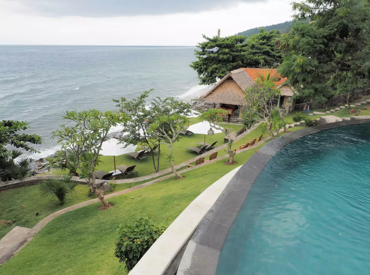 Villa Manatee in Abang, Bali has ocean views, a private pool and beach and sleeps 5 people at R2,021 a night.