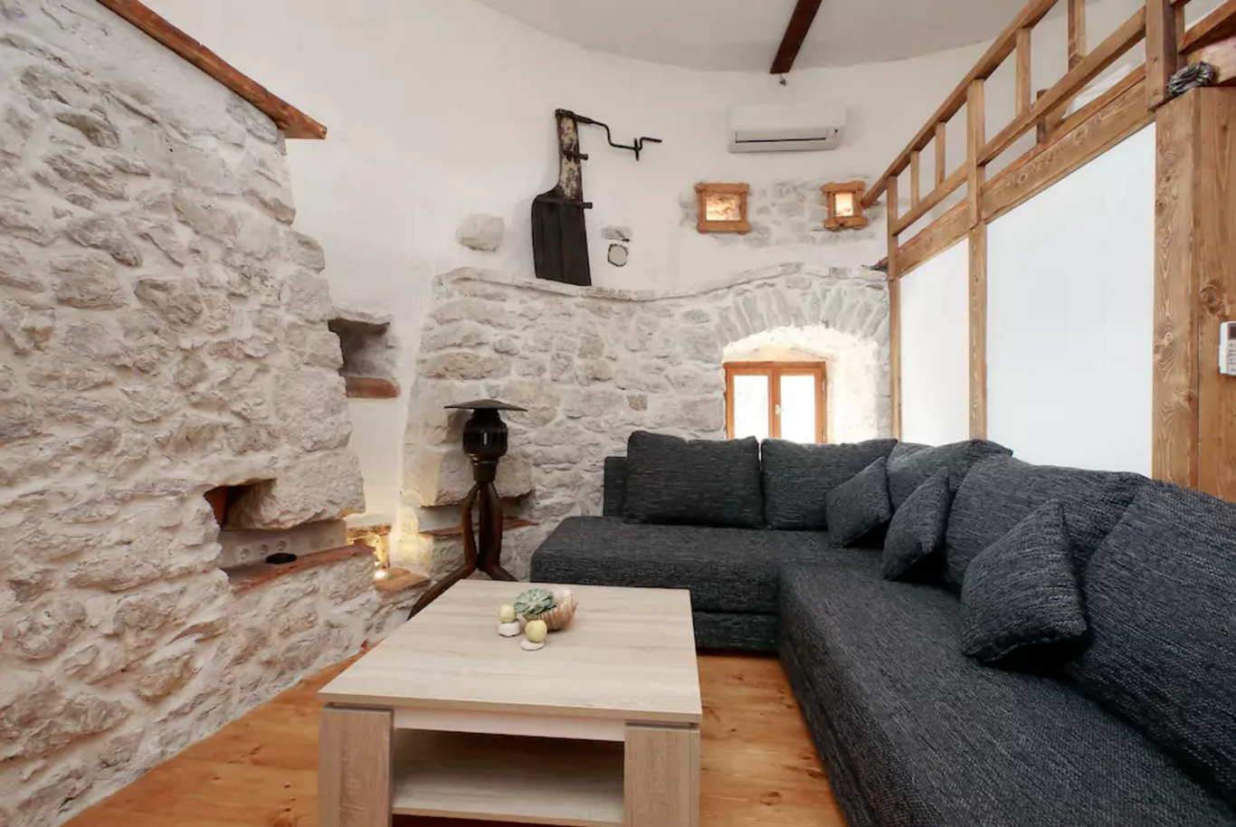 Stay in a refurbished Franciscan windmill built in 1761. The old tower “Ruina di Molino a Vento” can be found in the centre of the town of Hvar was built by the Franciscans as a windmill in 1761. This cultural monument has four floors, one bedroom, lounge area, living room, kitchenette, dining area, one bathroom, one toilet, a private garden and a private parking.