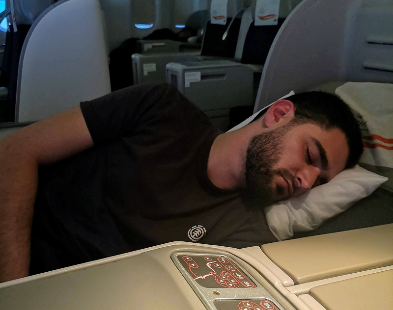 There are USB ports to charge your phone (we know just how important they are!) and the staff were helpful, although not always fluent in English. Having never slept well on long haul economy flights, the both of us both passed out right away, waking only for breakfast.