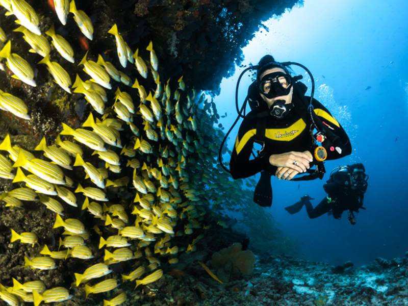 The best time to go scuba diving and to enjoy the best weather is between the months of July and August and December and January.