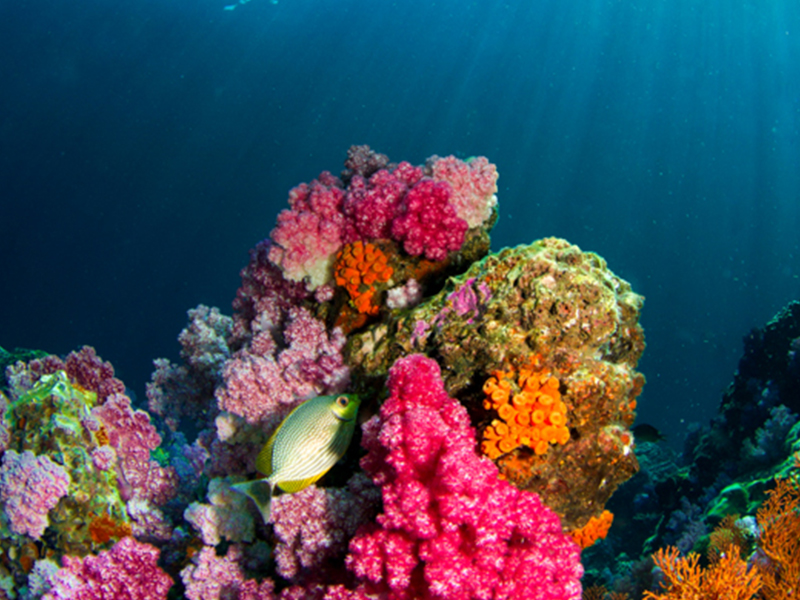 The coral reefs fringing the coastlines of each of its Islands are diverse and luxuriant due to the clear water, intense sunlight and rapid exchange of nutrient-rich water.