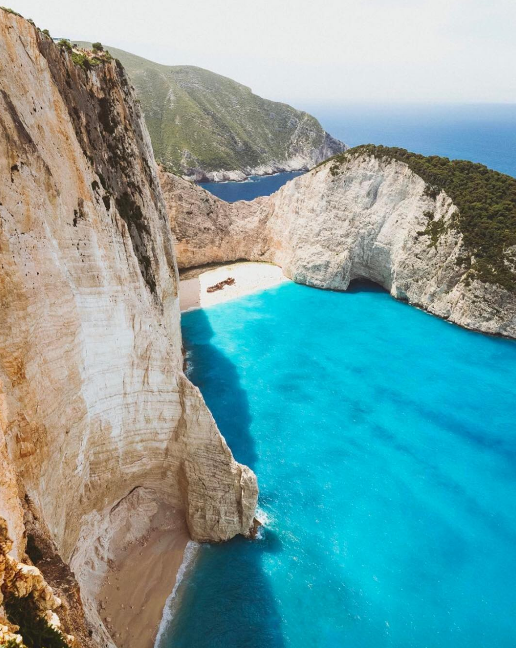 This Ionian island jewel has a cove known as Navagio or shipwreck beach.