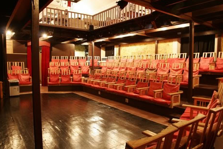 The moment you walk into the Kalk Bay Theatre, an old white chapel looking out over the sea, you’ll know that this is a theatre the way theatres used to be made. Old wooden chairs with red cushions (some of them couple chairs so you can snuggle up to your loved one without the arm of the chair getting in your way), an open space for the performance, and an upper balcony that serves drinks and food before the show and during interval.
