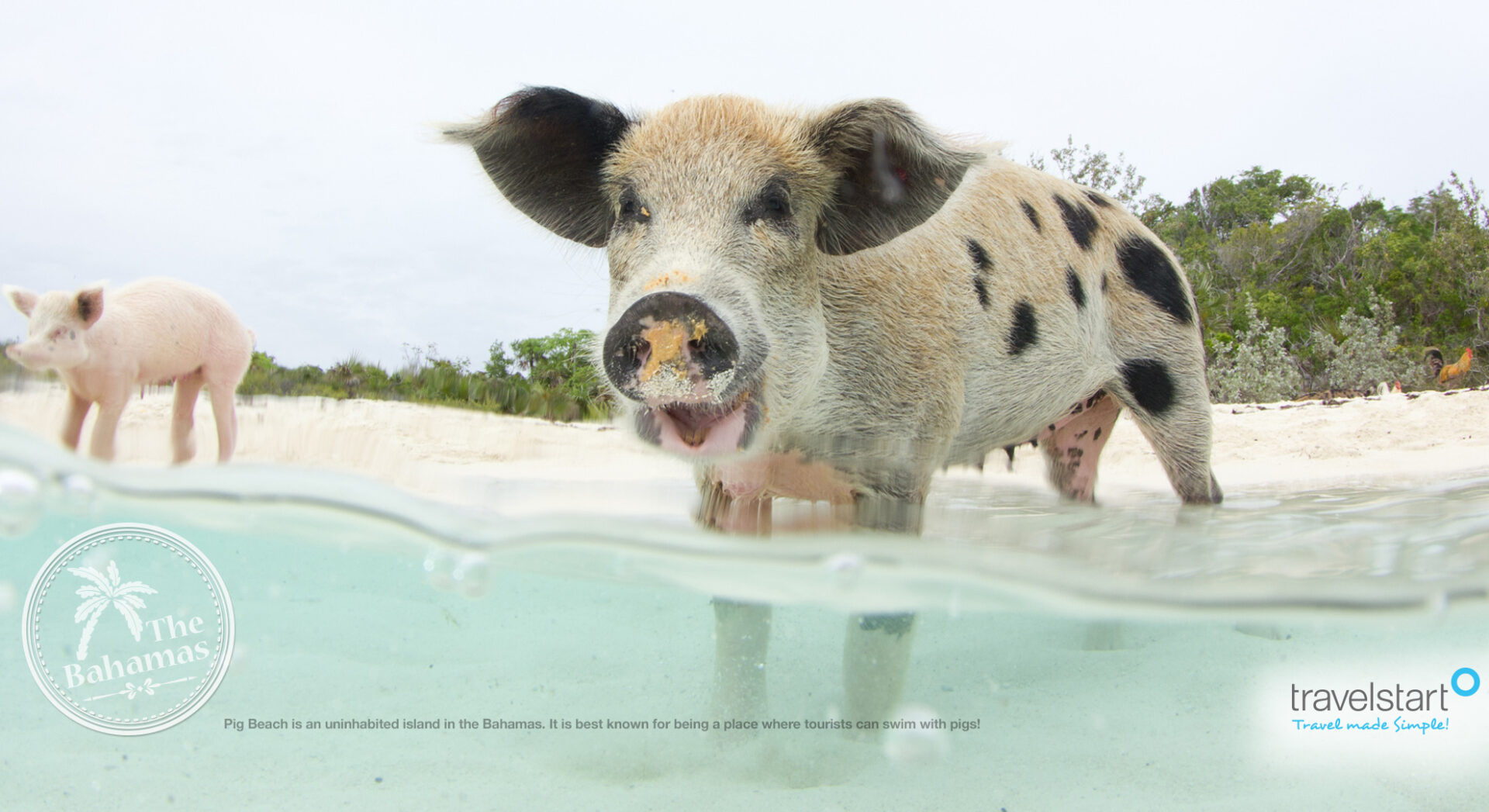 Pig Beach (also known as Pig Island, Major Cay, and officially Big Major Cay) is an uninhabited island (or cay) located in Exuma, the Bahamas, and known for being populated by many swimming feral pigs.