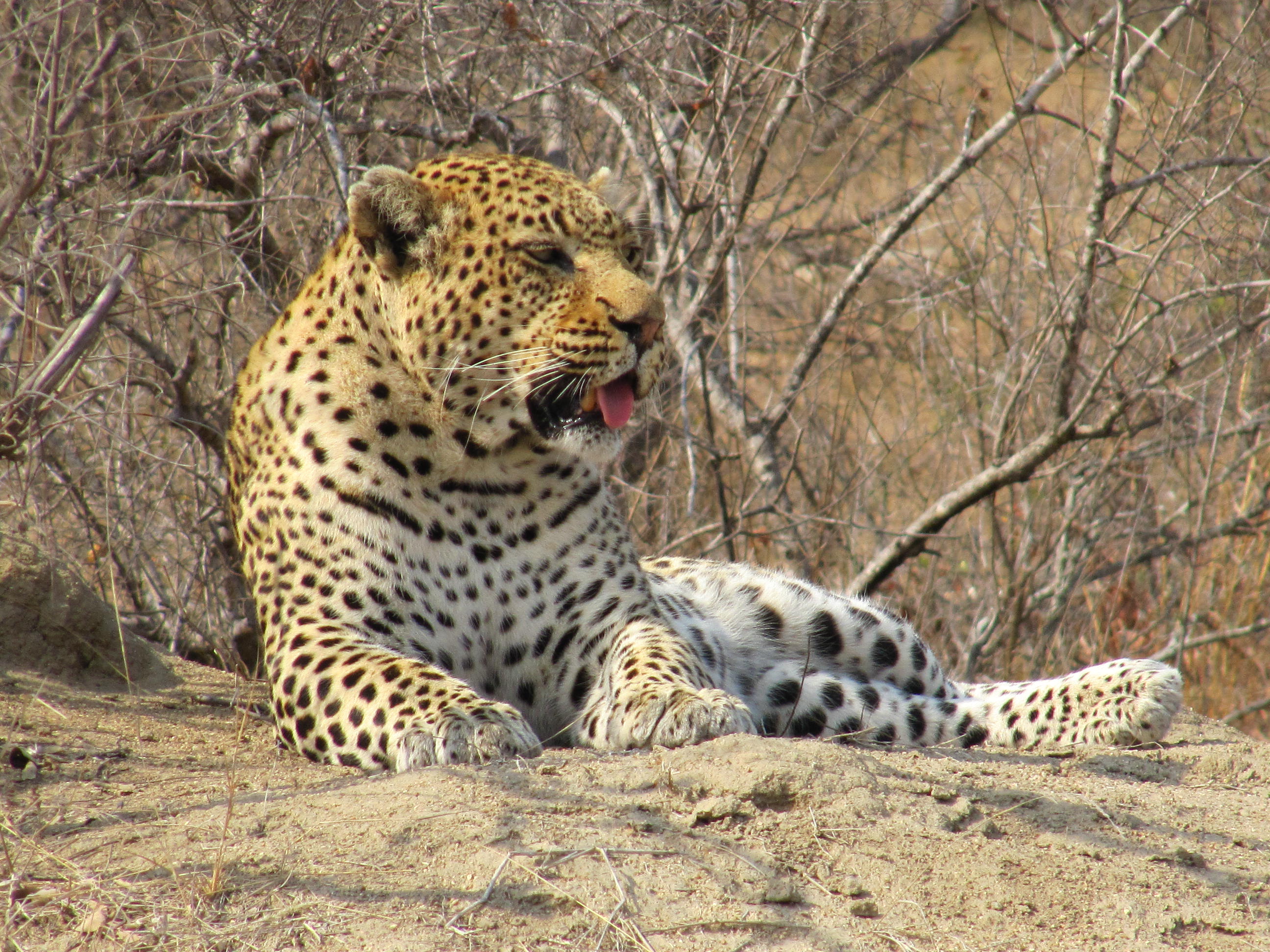 The game drives Chad takes you on are as interesting and exciting as they are informative and entertaining. He’s not afraid to put the game vehicle through its paces as he bundu bashes and tracks down a possible Big 5 lead. Just today (early morning drive departing the camp at 6am) we had lost all hope of spotting the elusive leopard when a radio call lead us to Argyle Male – one of Motswari’s resident leopards. After some ducking and diving we found the leopard on a seemingly aimless route. He didn’t seem intimidated by the presence of no less than 3 game vehicles with keen photographers on board and even posed for some shots (see below) on top of one of the abandoned termite mounds. I couldn’t believe how he sat there washing himself not unlike my cats at home. Seeing Argyle Male has been the definite highlight for me thus far!