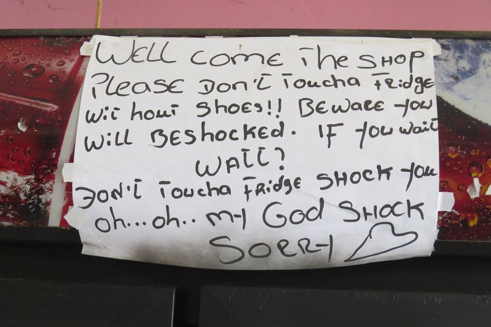 The Facebook page, naturally features a number of posts dedicated to saving our rhinos. It also has a number of albums which feature downright hysterical photos, like one called “Toilet Humour” featuring interesting toilet situations across the dark continent and another called “Drive by Shooting” which features bizarre pics taken while on the road. An almost definite favourite though is one called “Lost in Translation“, a catalogue of hilarious signs and notices snapped all over Africa. Here are some of our favourites: