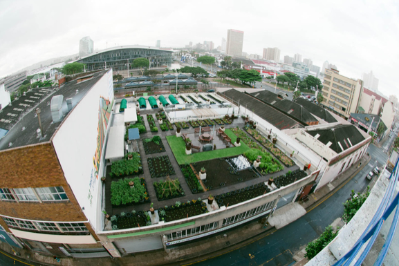 What is so amazing about the Priority Zone is that you’re standing in the middle of the city, but surrounded on all sides by indigenous succulents, fresh vegetables, herb tunnels and greenery. There’s a meeting area, a relaxation area and a giant chessboard, and an abundance of birds, butterflies and bees – all within sight of the heart of the city.