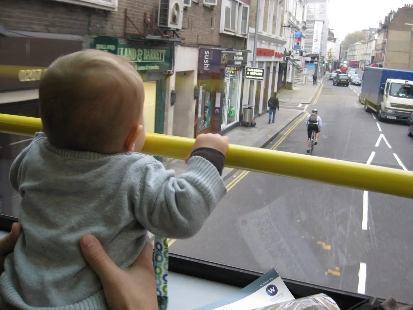 We of course had to do this once again, but this time we toured the city by double-decker bus, one of the best ways to get a birds-eye view of London’s city life. (As you can see from the photo, our child liked the upper-deck front seat.)