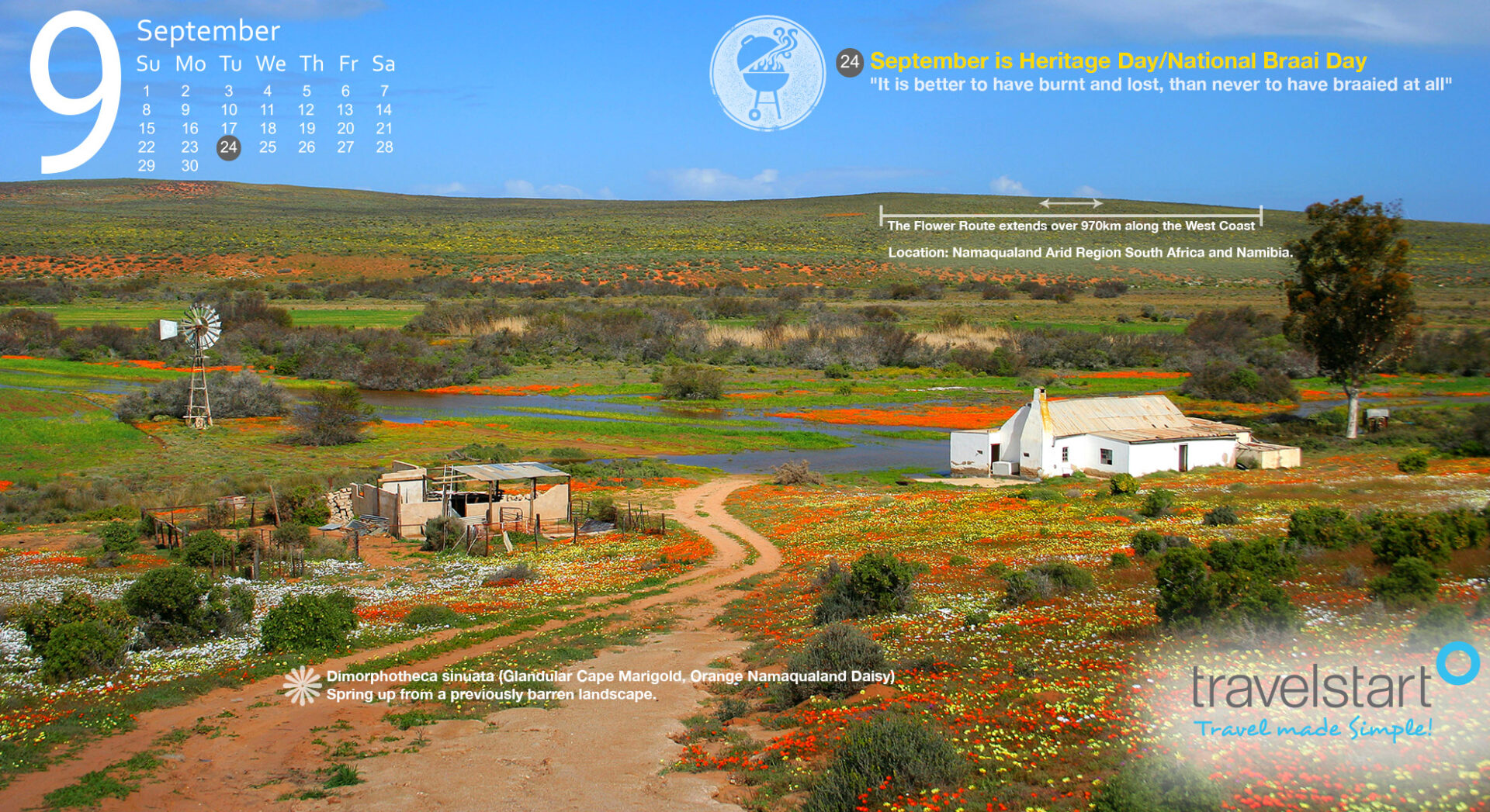 With September falling on a Sunday this year we’ve released the latest free wallpaper calendar a little early. Designed for you with love from Travelstart, this month’s calendar goes a long way in changing your favourite devices into an outfit with a decidedly sunnier outlook on life.
