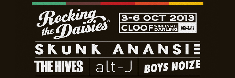 Rocking the Daises, 3rd – 6th October 2013 will be held on Cloof Wine Estate in Darling, Western Cape. In its eighth year since inception Rocking the Daisies has gone on to become the Western Cape’s most iconic outdoor music festival and South Africa’s premier eco-friendly music and lifestyle festival.