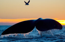An Aerial view of Cape Town, voted the best city in the world 2025. In the foreground there is the ocean surrounding the city, in the middle is the city's architecture and stadium and in the background is the towering Table Mountain and Lion's Head an Chapman's Peak.