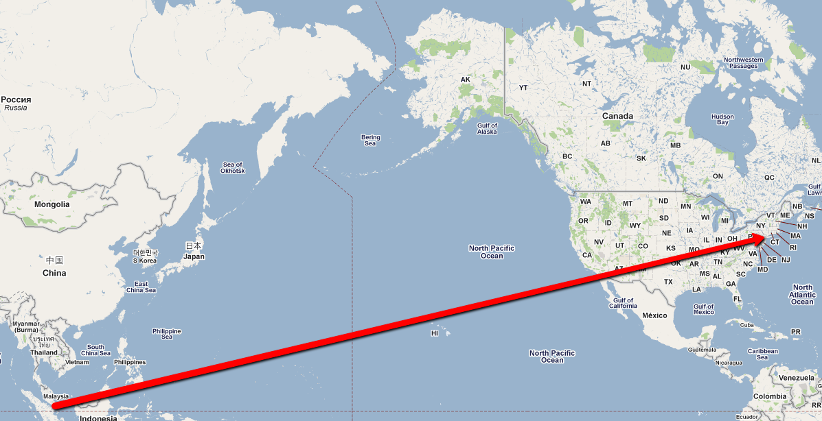 1> Number one also belongs to Singapore Airlines – 15345km from Newark (New York) to Singapore in a staggering 18 hours and 50 minutes! And due to the curvature of the earth, this flight (like many in the Northern Hemisphere) takes the shortest route which goes over the arctic too!