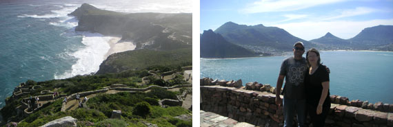 We went passed Sweetwater and Misty Cliffs (which were indeed ‘misty’) and entered the Cape of Good Hope Nature Reserve. After a winding drive where we could admire the striking indigenous flora we arrived at the parking area for the Cape Point lighthouse. Unfortunately for us the funicular was out of service so we had to walk up the steep hillside. The hike helped keep us warm as the wind picked up the nearer we got to the top. The stunning views of the Cape of Good Hope and False Bay along the way and at the lighthouse were well worth it. Although we had to keep going, there was so much to see and do in the Nature Reserve (Visitor’s Centre, hiking trails, historical monuments and buildings, shipwrecks, tidal pools) that you could easily spend a whole day there and still run out of time.
