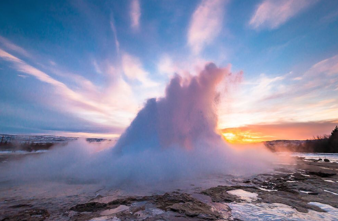 The Strokkur Geyser erupts like clockwork every 6 to 10 minutes and reaches heights between 20 and 40 metres.
