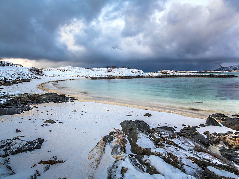 While its white sandy beaches and crystal-clear bays draw summer visitors, winter transforms this charming fishing village into a magical wonderland. Picture this: the northern lights painting the sky in vibrant green and pink hues as they dance over the islands scattered along the coastline. It’s a breathtaking display of nature’s beauty, making this destination feel like a surreal winter paradise perfect for a White Christmas you’ll never forget.