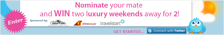 This April, Travelstart have launched a new and exciting competition, aimed at spreading the love on Twitter to all your mates! The deal is simple, go to our competition page before 2 May 2011 and follow the steps – you’ll be nominating your mates to win a trip for two to Durban and if your tweet is picked, you win a trip too!
